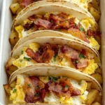 These Baked Breakfast Tacos are more than just a meal; they’re a delightful way to start the day, bringing everyone together over a warm, comforting dish. Whether you’re preparing a family brunch or just treating yourself, these tacos are sure to become a new favorite. So gather your ingredients, embrace the aroma of bacon, and enjoy the cozy moments around the breakfast table. Happy cooking!