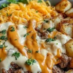 Imagine digging into a mountain of crispy, golden potatoes, layered with perfectly seasoned beef, sweet caramelized onions, and a handful of melty cheese. Each delicious bite is drizzled with a special sauce that’s both creamy and tangy, while fresh greens offer a bright crunch. This bowl embodies the essence of a classic burger, reimagined to suit today’s casual dining culture. Trust me, you’re going to want to bring these Smash Burger Bowls into your weeknight rotation!