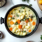A comforting Chicken Gnocchi Soup with creamy broth, tender gnocchi, and shredded chicken, perfect for chilly nights.