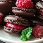 Indulge in these elegant Dark Chocolate Raspberry Macarons, featuring a rich chocolate ganache and tart raspberry filling.