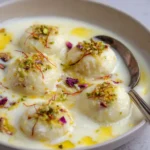 Before serving, garnish your Rasmalai with generous amounts of chopped pistachios and almonds. A sprinkle of saffron on top can add an elegant touch, both visually and flavor-wise.