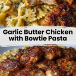 A comforting dish combining bowtie pasta, tender chicken, and a rich, garlicky butter sauce, perfect for busy weeknights.