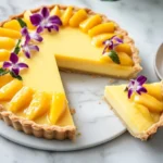 A delightful dessert featuring creamy mango curd in a flaky tart shell, perfect for summer gatherings.